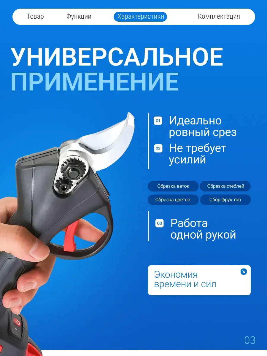 Электросекатор аккумуляторный универсальный для деревьев также можно использовать как сучкорез и кусторез, благодаря чему вы сможете легко поддерживать порядок в своем саду. Этот инструмент станет незаменимым помощником для любого садовода, а также отличным подарком для мужа или отца, который любит заботиться о своем саде.